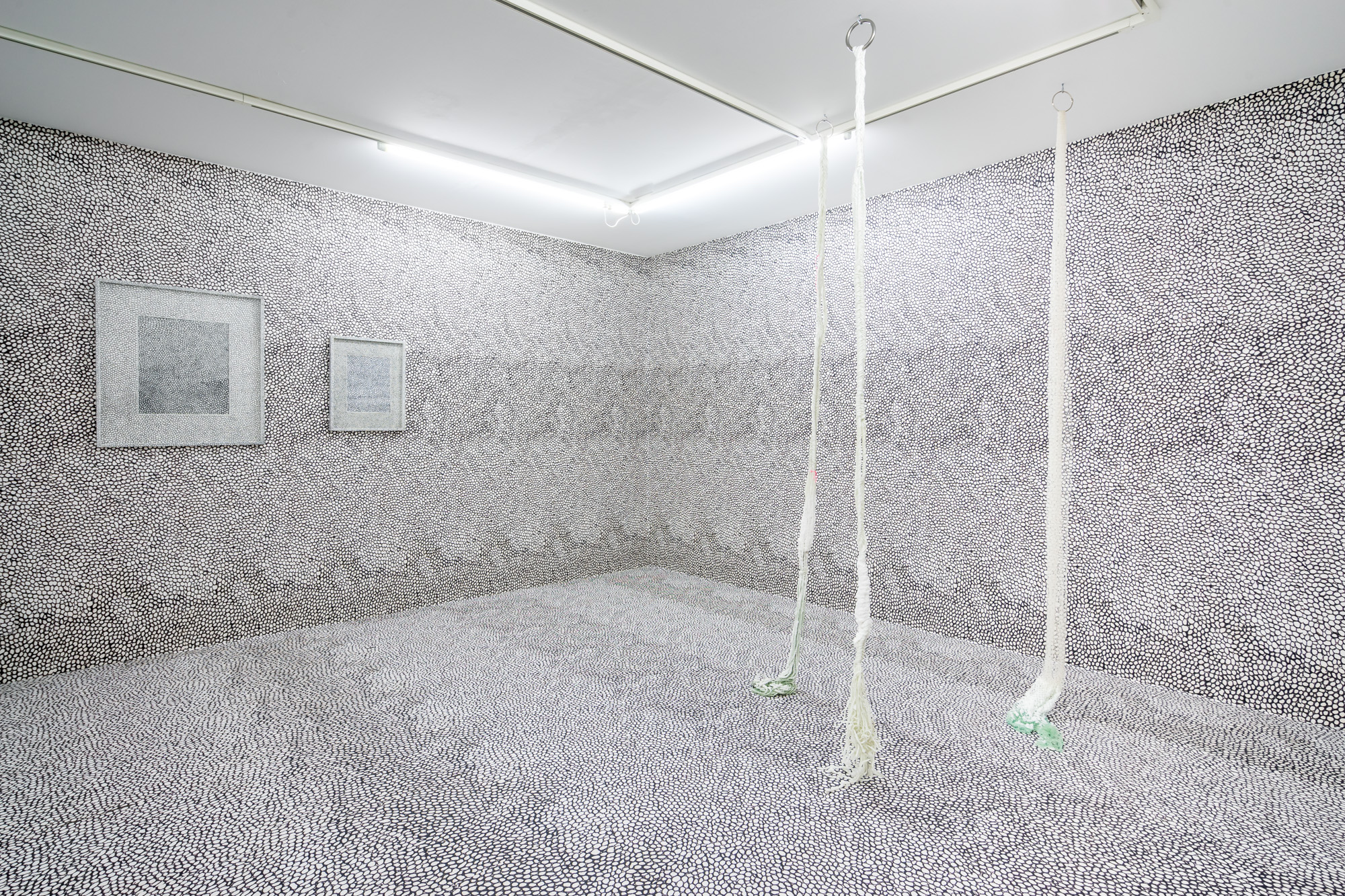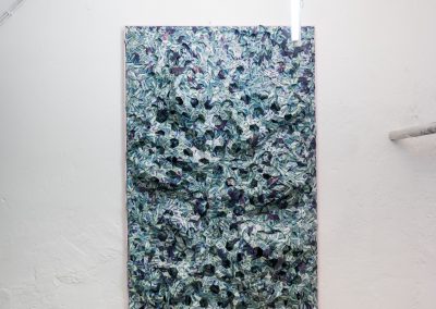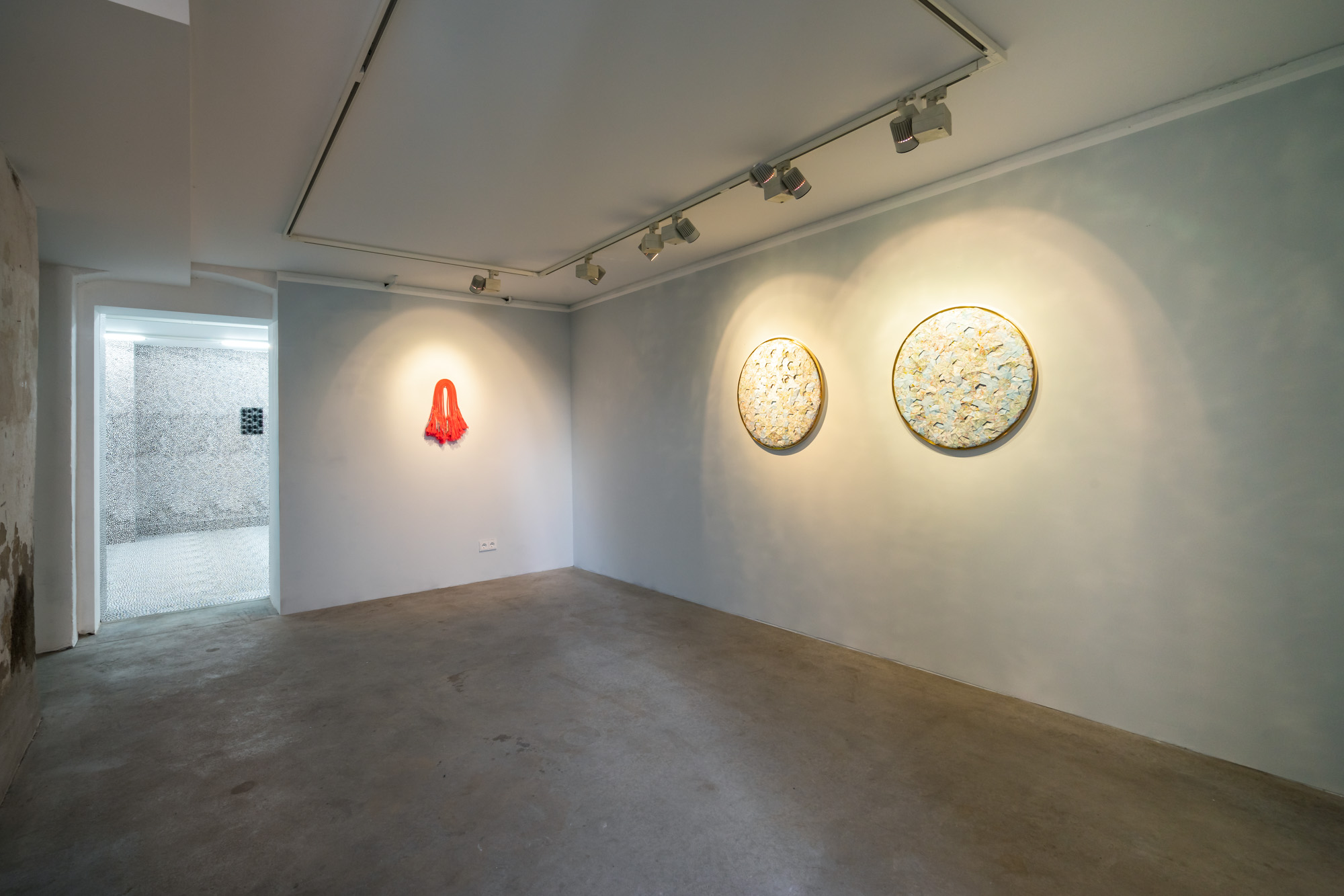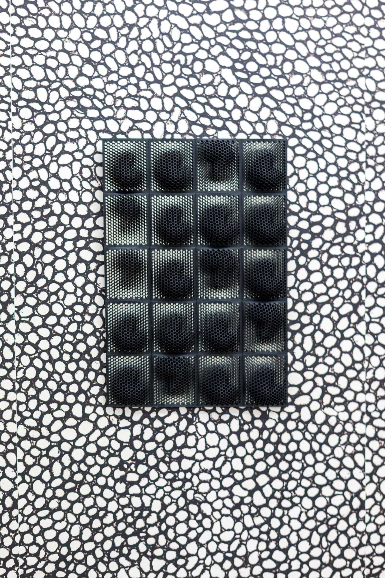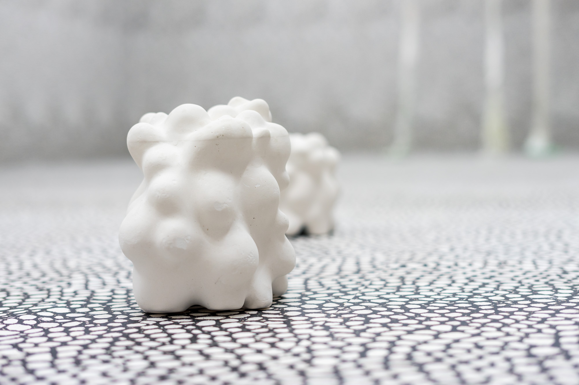 In den Arbeiten der Ausstellung „Smells like Apohenia“ spielt das Verhältnis zwischen einzelnen Bausteinen und ihrer inhärenten Gesamtstruktur die entscheidende Rolle. Alle Arbeiten der Ausstellung basieren auf individuellen Einzelelementen. Erst durch zigfache Wiederholung dieser Einzelelemente wird eine Gesamtstruktur erkennbar.